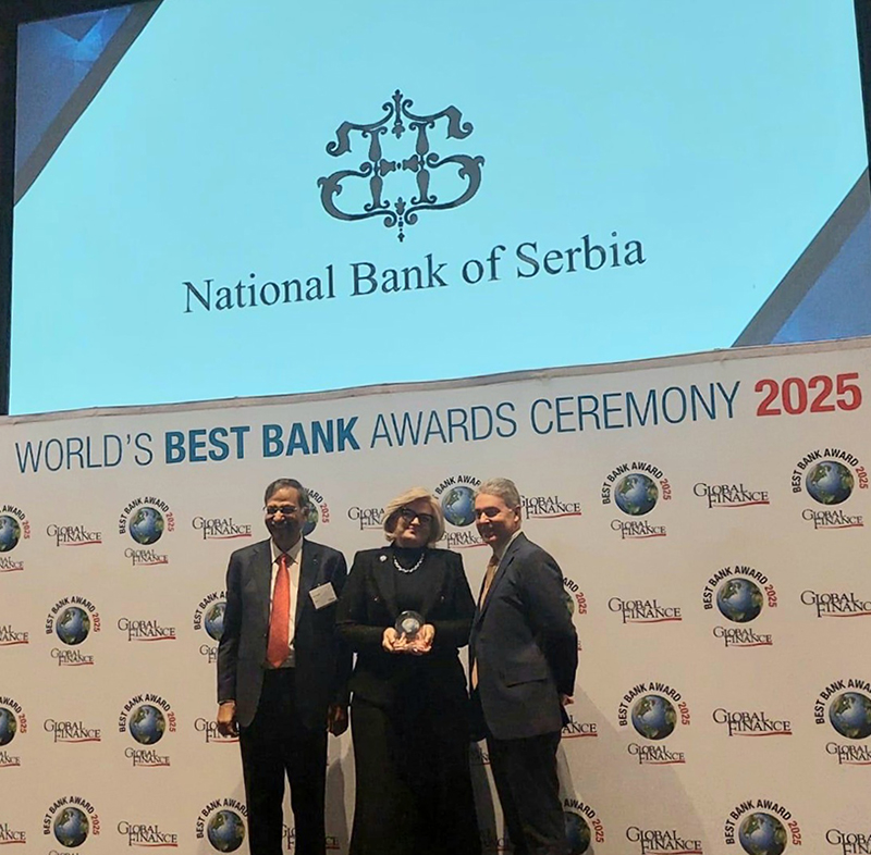 Guverneru Narodne banke Srbije Jorgovanki Tabaković danas je na ceremoniji u Vašingtonu uručena ocena „A–” od svetskog finansijskog časopisa Global Finance, u okviru izveštaja Ocena rada guvernera centralnih banaka u 2025. (Central Banker Report Cards 2025).